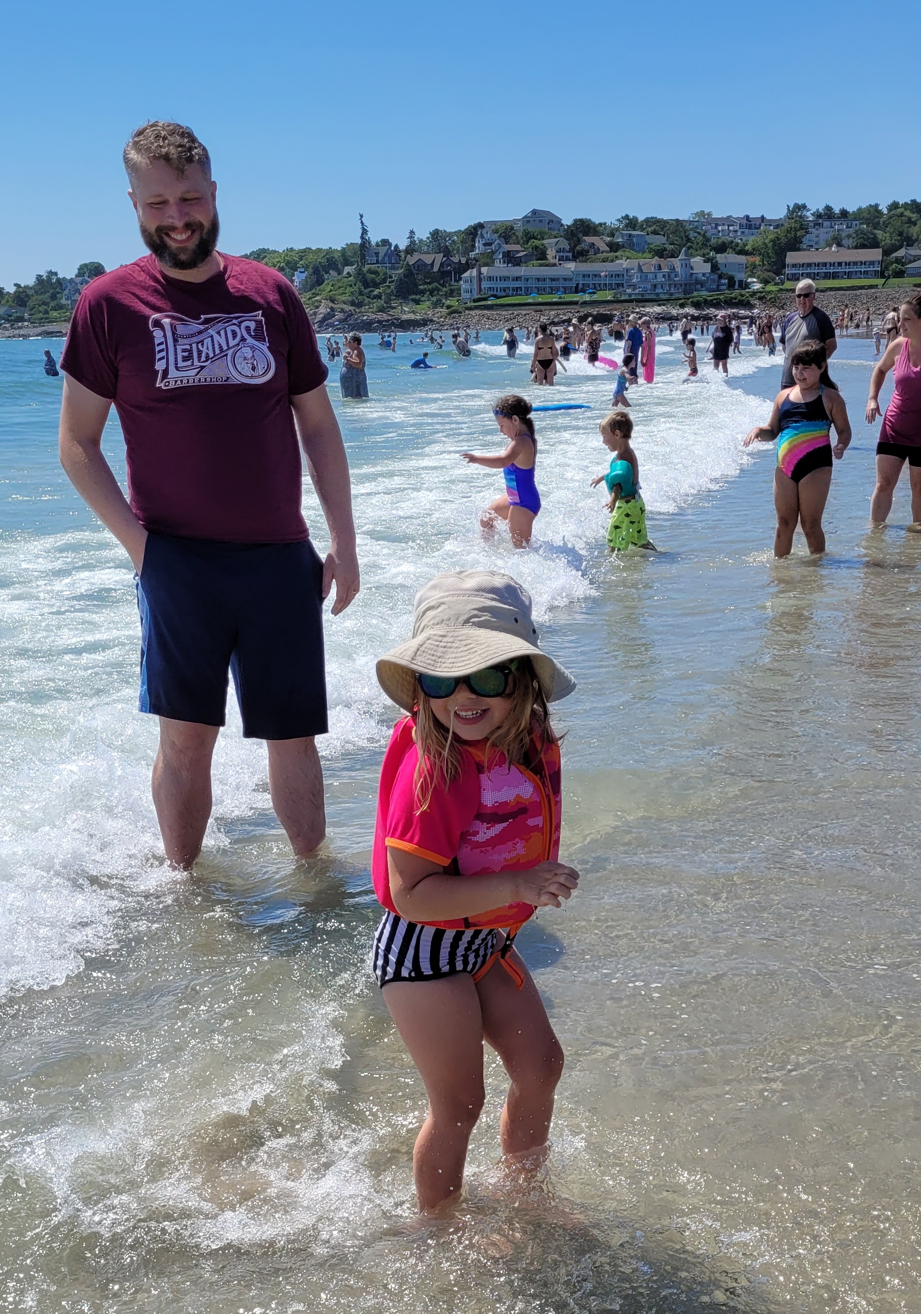 We enjoy many activities as a family, and visiting the beach is always a big hit! Each year as part of our trip to New England with our extended family on Tracy’s side, we make a stop at the beach. The water is cold but we have a great time!