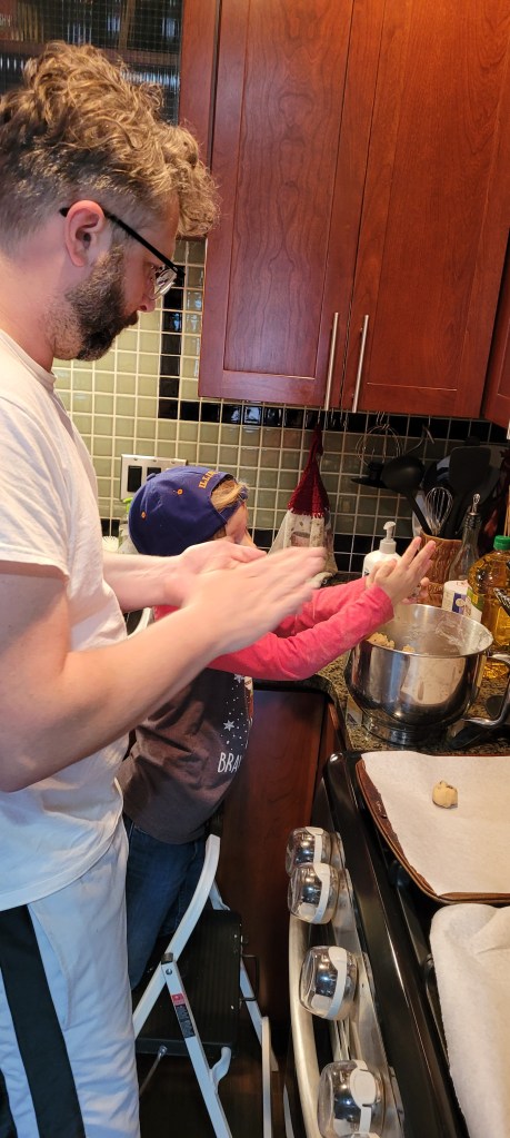 One of our favorite family activities is baking together, and nothing is more fun than making chocolate chip cookies with daddy!